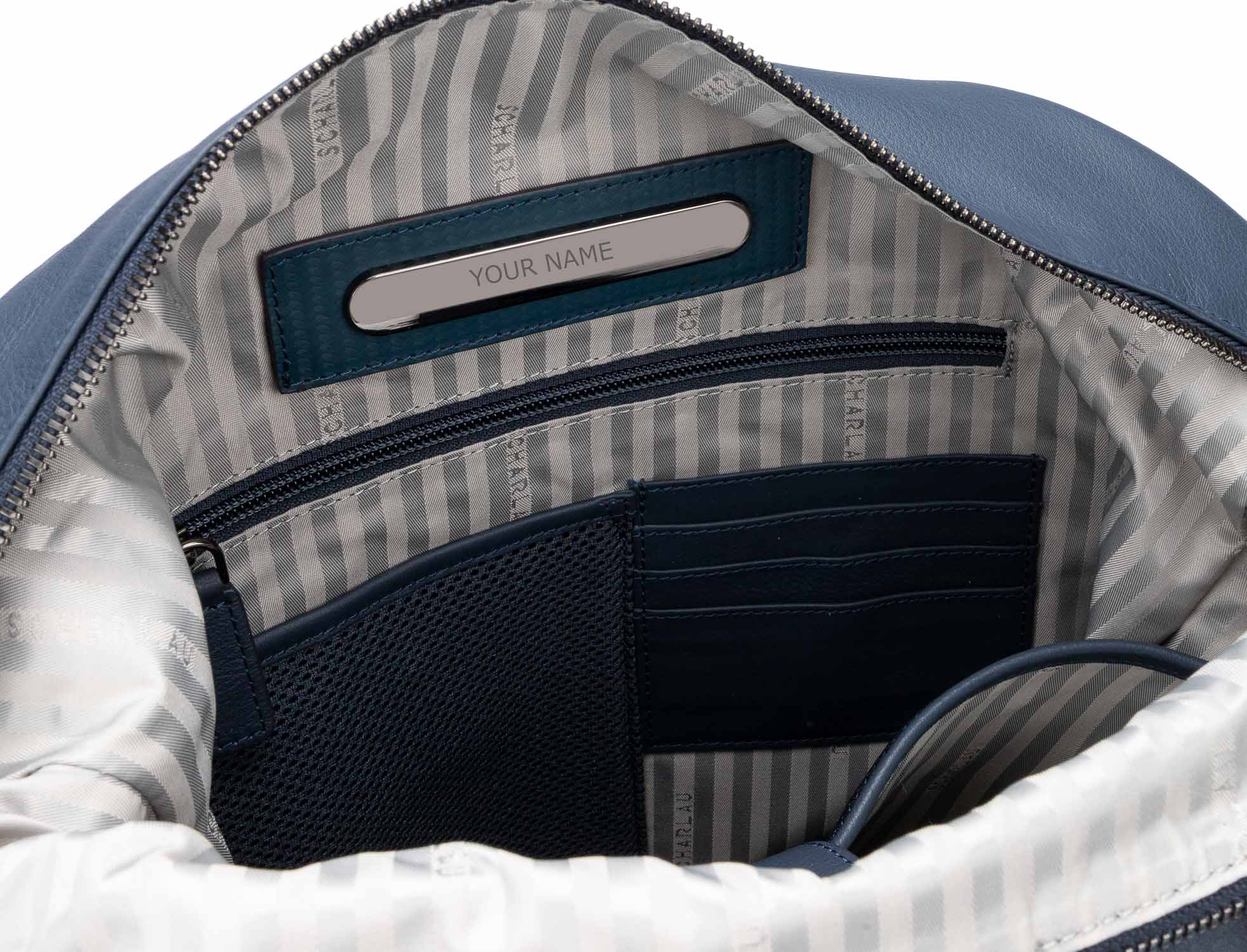 Uno scomparto principale, tasca interna e porta carte
